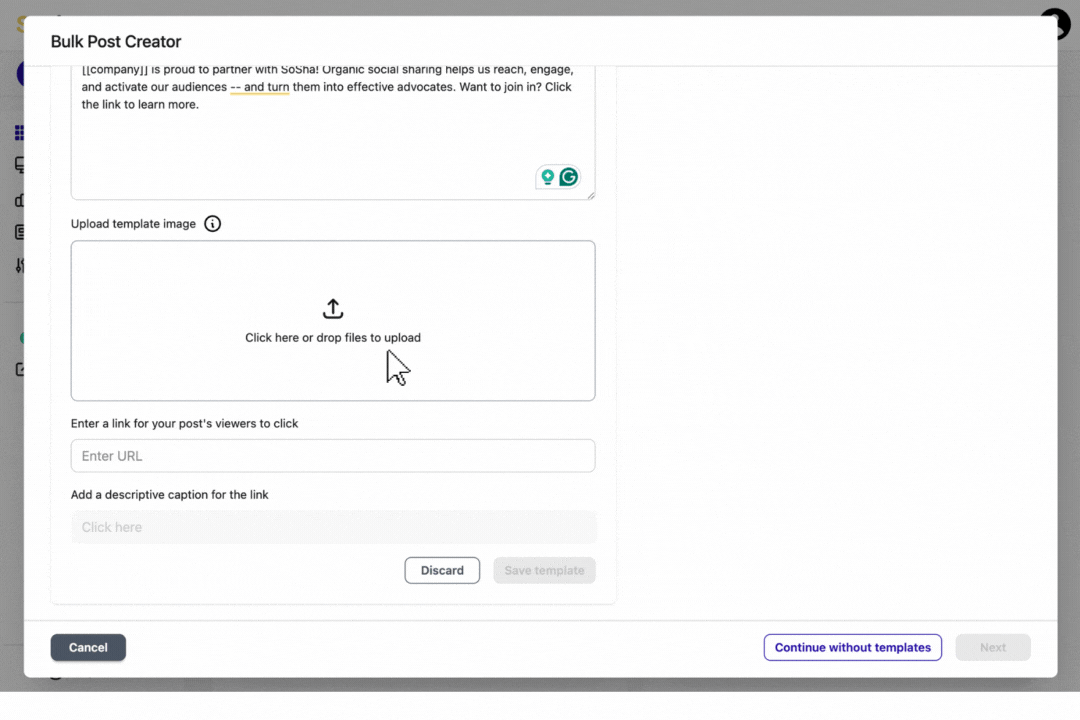 Upload a Template Image. Use an image with a blank space where a variable (e.g., a logo) will be placed for each post.