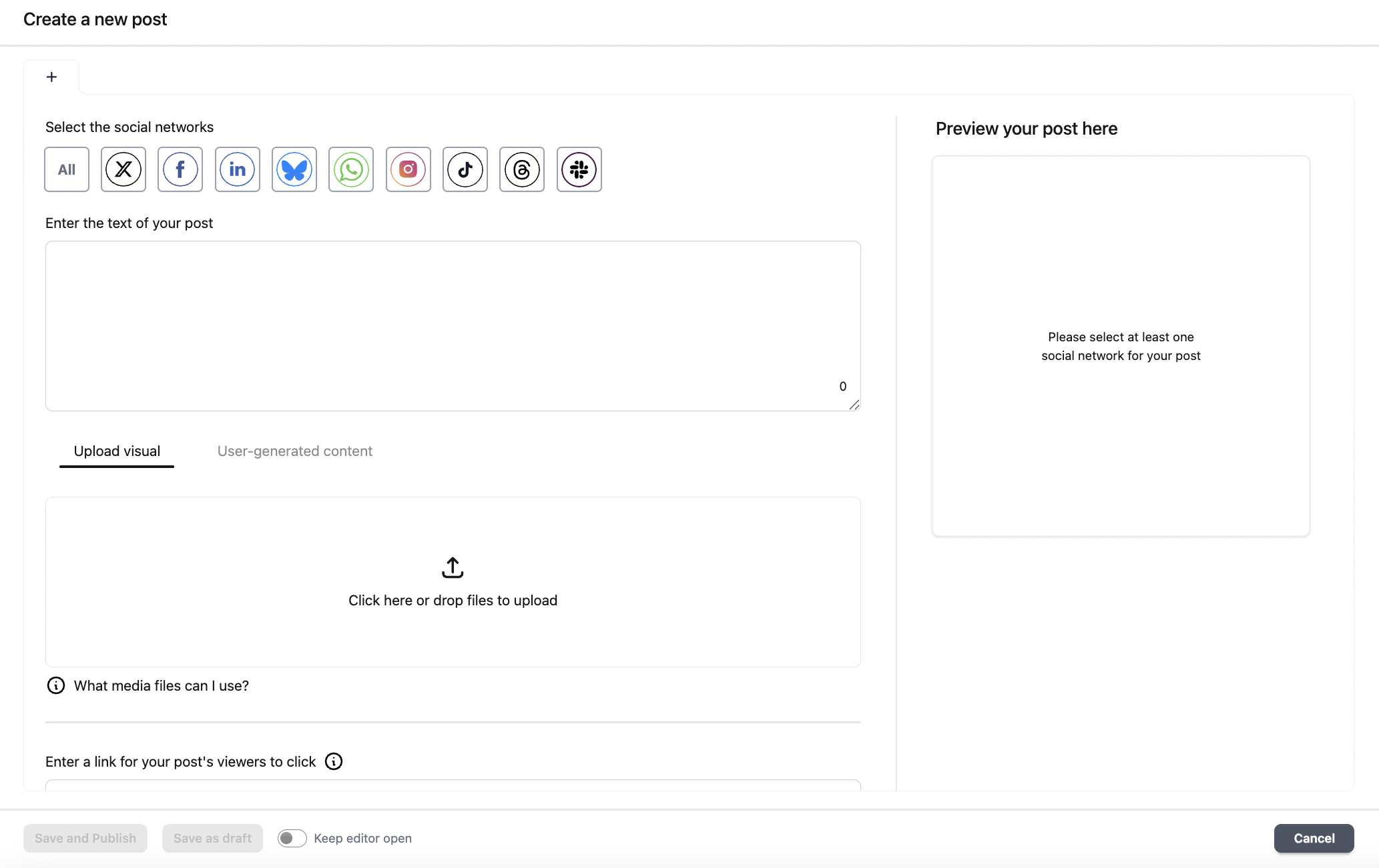 Once you select a social media platform, you can add a link, text, or graphic.